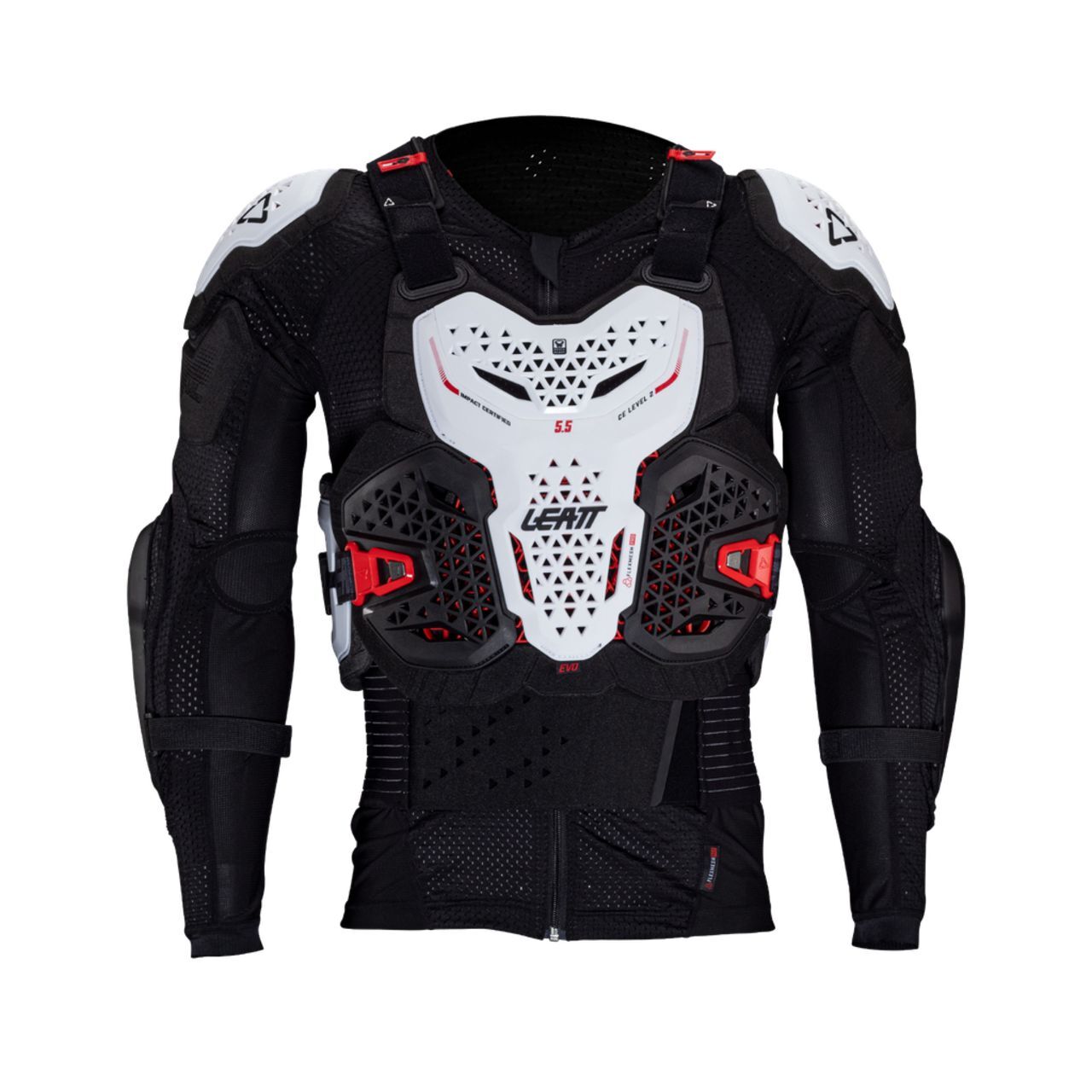 Body Protector 5.5 EVO обеспечивает уверенность в своих силах, гарантируя безопасность и комфорт. Эта модель на 19% легче и на 50% более вентилируемая, что обеспечивает повышенный комфорт и воздухопроницаемость при длительных поездках. Созданная из жесткой оболочки и комбинации FlexMesh Pro, Body Protector 5.5 EVO - это вентилируемая броня, которая не только защищает, но и сохраняет прохладу под давлением. Конструкция FlexMesh Pro отлично использует гибкие соединения, обеспечивая 3D-изгиб и исключительную посадку. Многопластинчатая артикуляционная конструкция повышает комфорт, обеспечивая естественность движений, а регулируемые жесткие панели обеспечивают исключительную защиту ребер и боков. Для большей универсальности передние и задние пластины являются съемными, а система BraceOn обеспечивает бесшовную посадку шейного корсета.